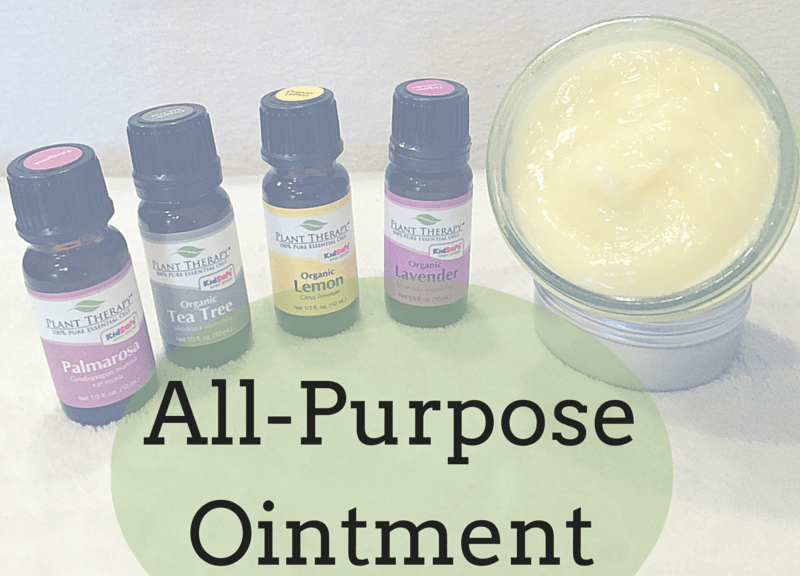 I made a second batch of ointment, this time using child safe essential oils (listed below in the recipe) that can help keep minor wounds “clean”. You can also make an ointment using essential oils that are helpful in softening rough, red, chapped skin, like Plant Therapy’s KidSafe synergy Silky Soft. To avoid ruining good clothes or linens, I’d wear old clothes or cotton gloves after applying the ointment to hands or body.