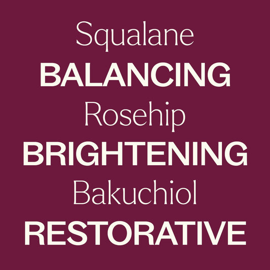 Squalane, Simmondsia Chinensis (Jojoba) Seed Oil, Rosa Canina (Rosehip) Fruit Oil, Tetrahexyldecyl Ascorbate (Vitamin C), Citrus Limon (Lemon SD) Peel Oil, Bakuchiol, Tocopherol (Vitamin E), Curcuma Longa (Turmeric) Root Extract