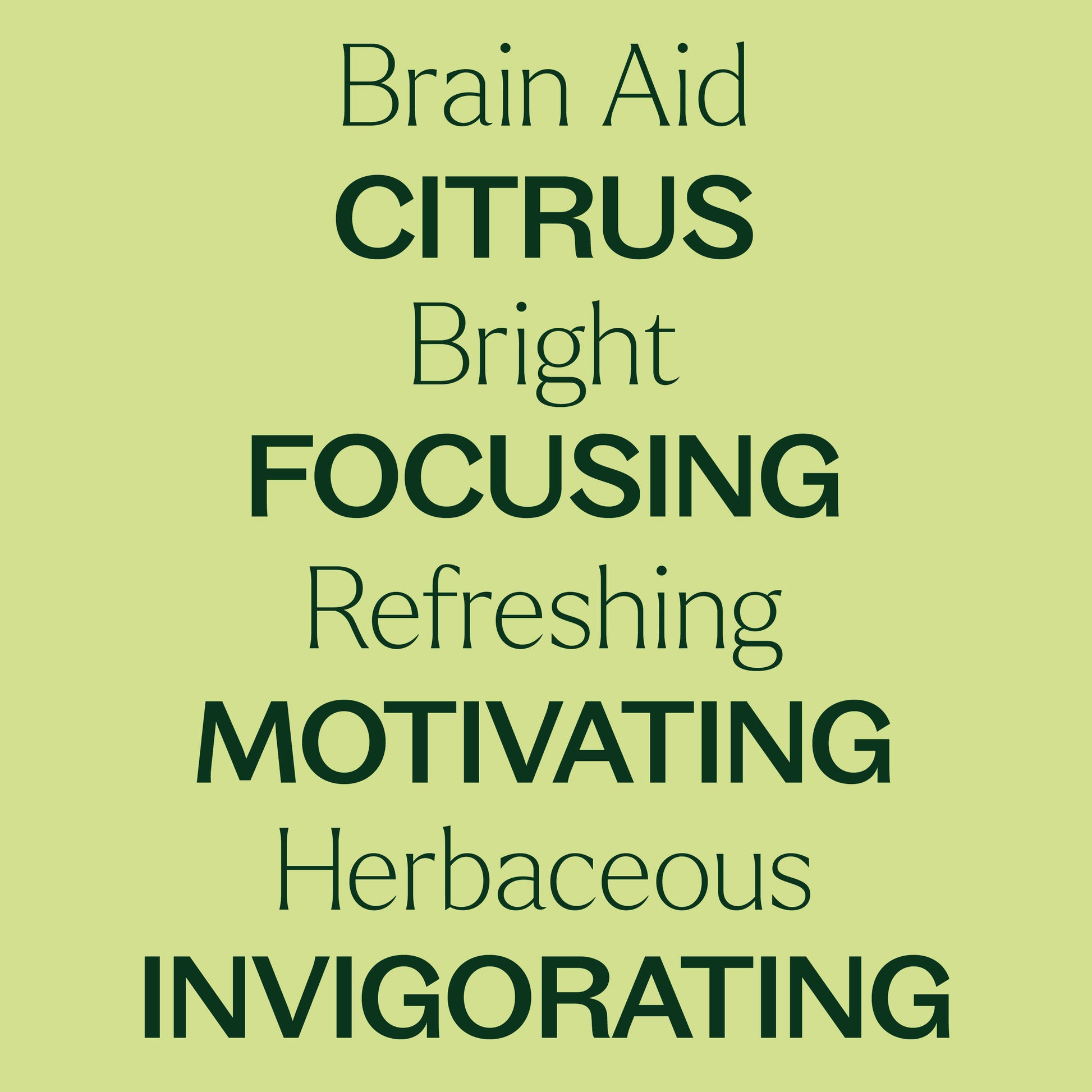 Encourages mental clarity, helps clear a foggy mind, and refreshing pick-me-up aroma.